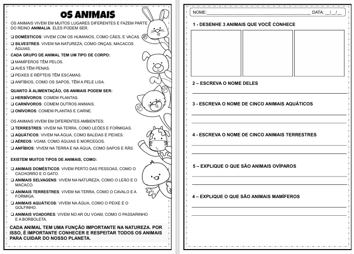 Esse material é voltado para alunos do 2º ano, com atividades práticas e educativas que ajudam a compreender a diversidade e importância dos animais.