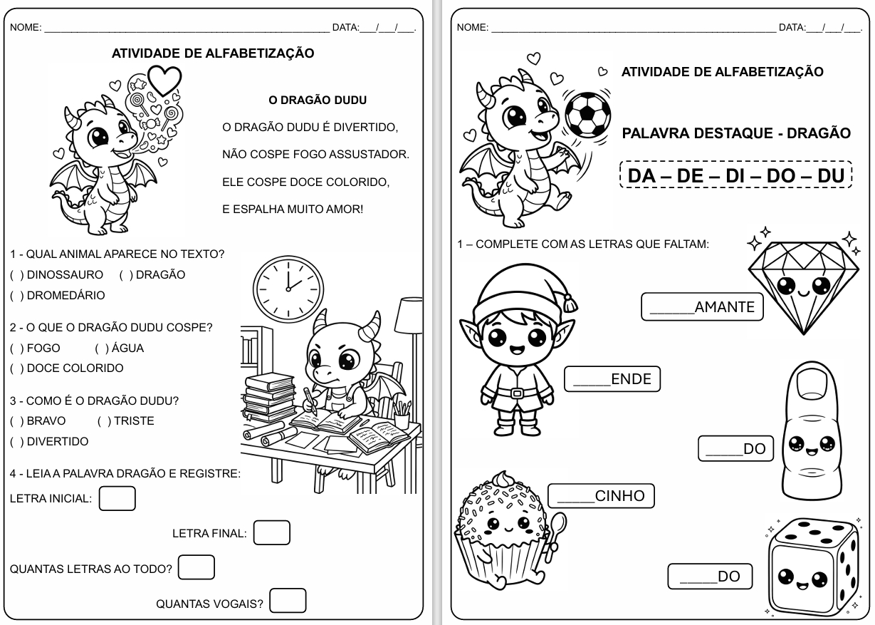 Esqueça os monstros assustadores. O Dudu é um dragãozinho divertido que, em vez de fogo, cospe doces coloridos e adora dançar aos domingos! Uma abordagem 100% positiva e lúdica para engajar as crianças no mundo da leitura. 🍭💖