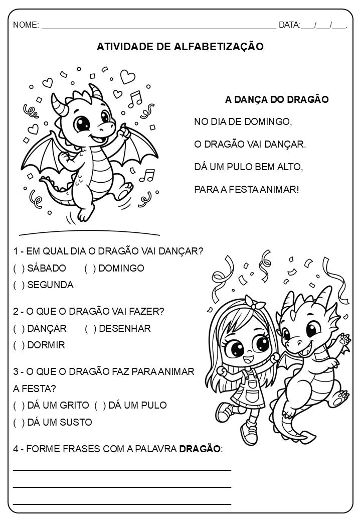 Leitura com Significado: 2 textinhos curtos, rimados e encantadores (“O Dragão Dudu” e “A Dança do Dragão”) perfeitos para o treino de fluência.
