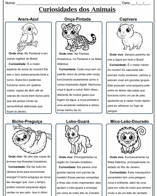 Os alunos vão aprender sobre os animais de forma divertida e significativa, enquanto desenvolvem habilidades importantes de leitura, interpretação e raciocínio lógico.