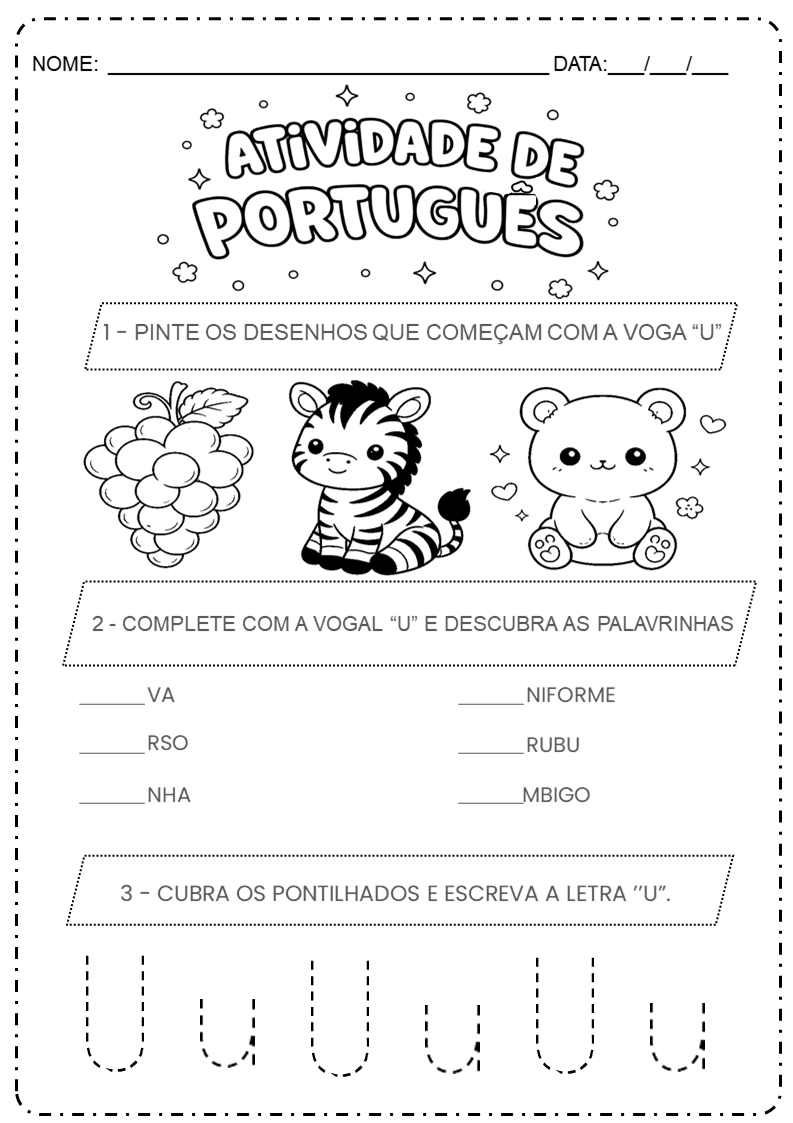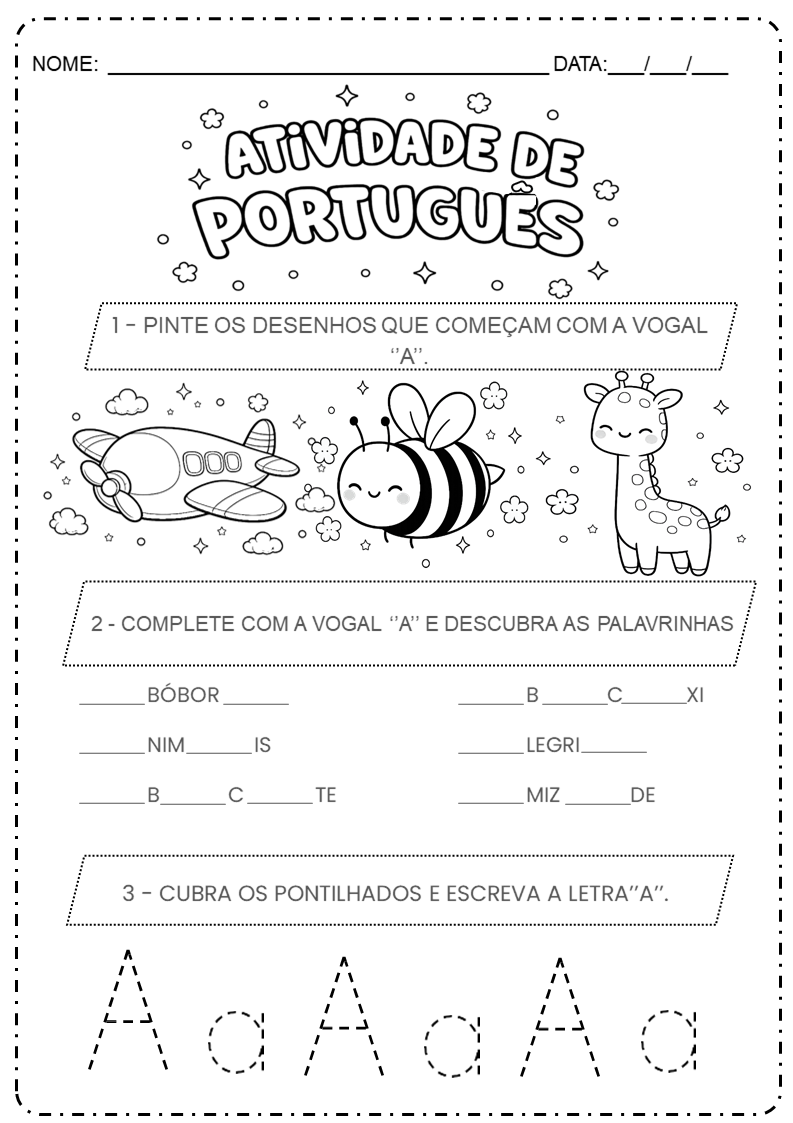 ✨📘 ATIVIDADE DE PORTUGUÊS – VOGAIS (A, E, I, O, U) 📘✨