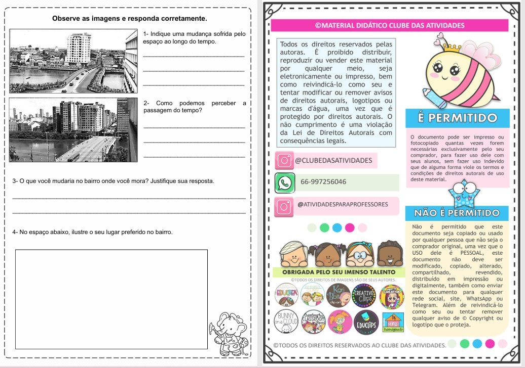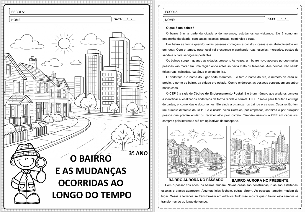 / O Bairro e as mudanças ocorridas ao longo do tempo – História 3º Ano