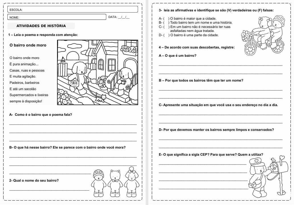 O Bairro e as mudanças ocorridas ao longo do tempo – História 3º Ano