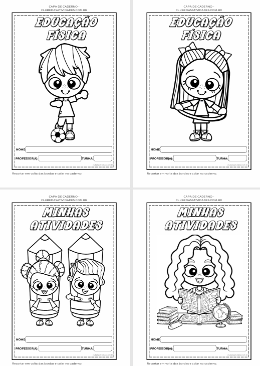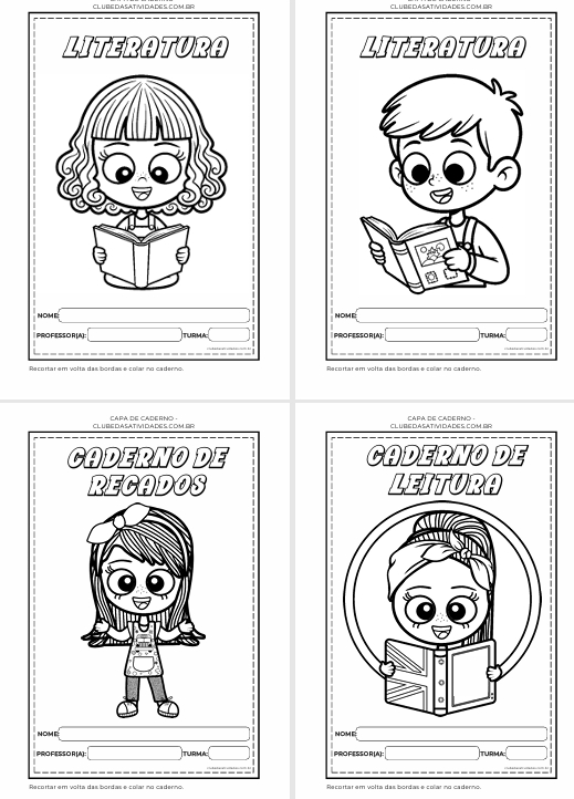 42 modelinhos de Capas de Caderno tema crianças para colorir.