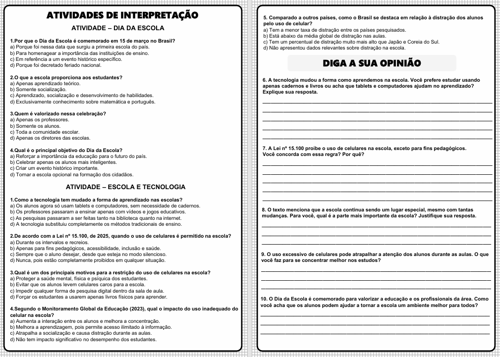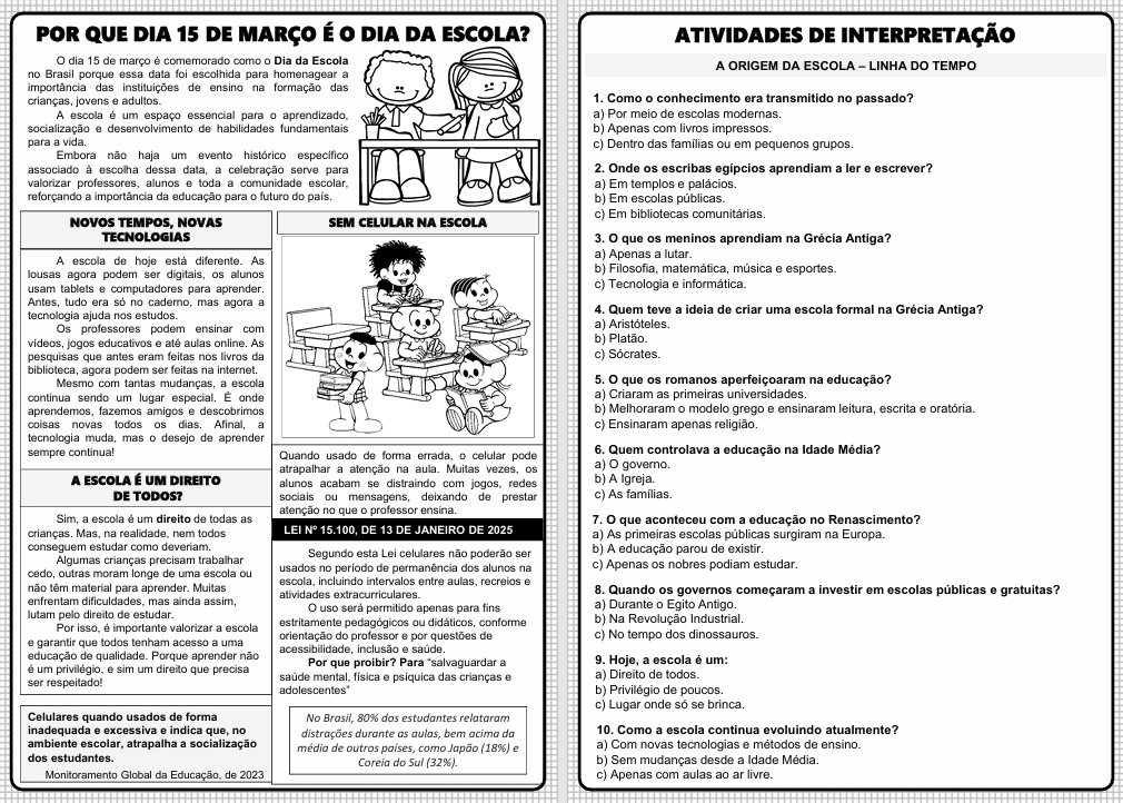 Conceito e atividades de interpretação para trabalhar o Dia da Escola.