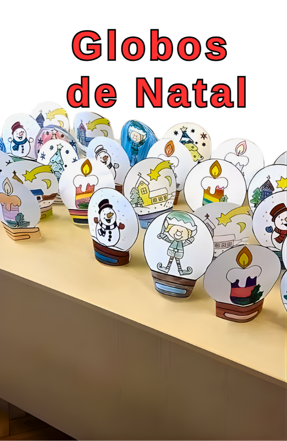 Imprima 35 Globos de Natal Interativos para crianças pintarem e montarem.