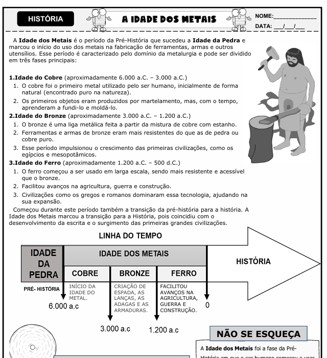 O documento “A Idade dos Metais – 5º Ano” apresenta os principais aspectos desse período histórico de forma didática para estudantes do ensino fundamental.