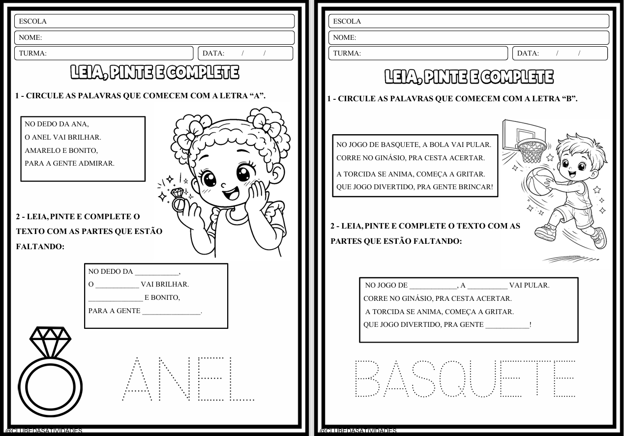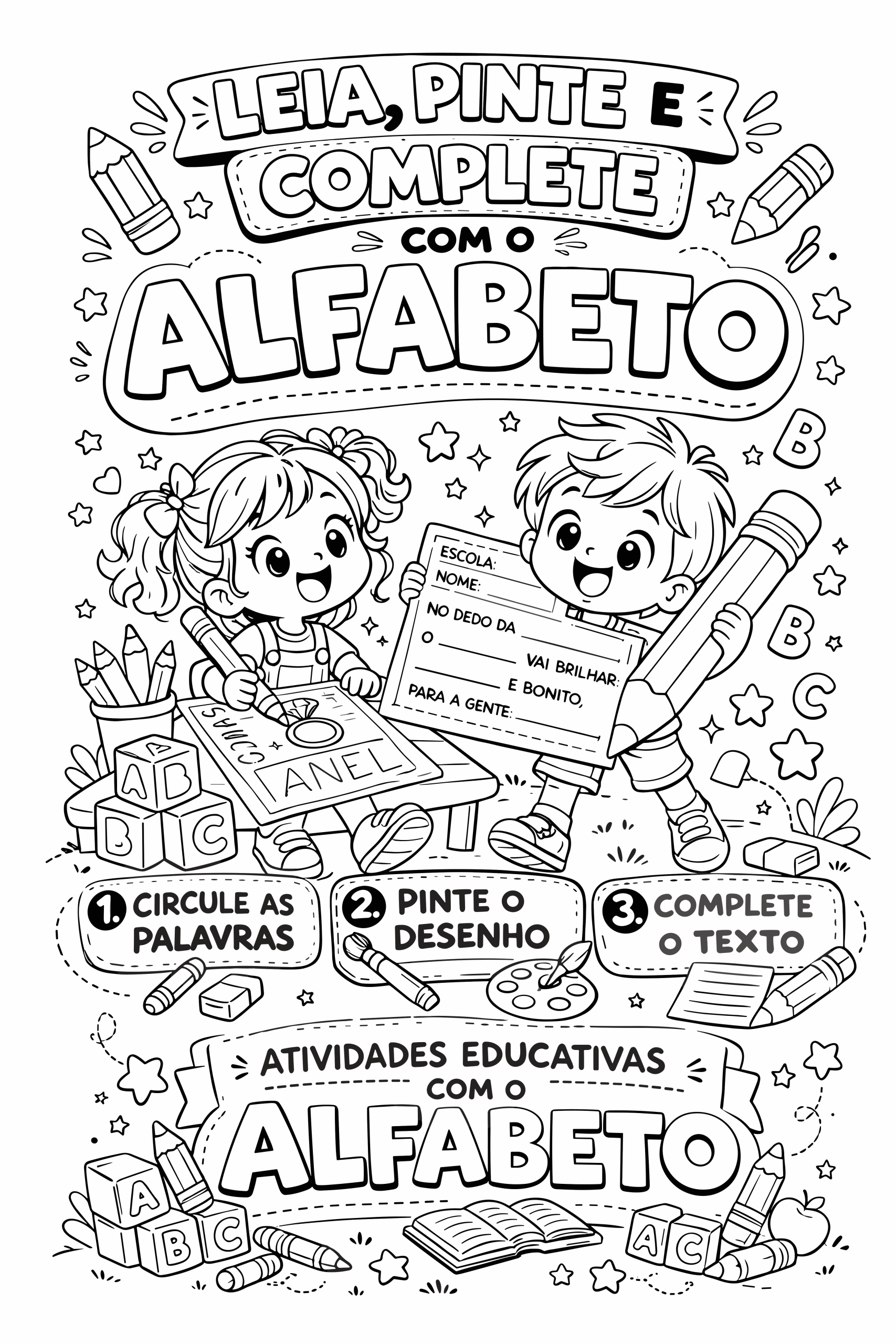 ✨📚 LEIA, PINTE E COMPLETE COM O ALFABETO 📚✨