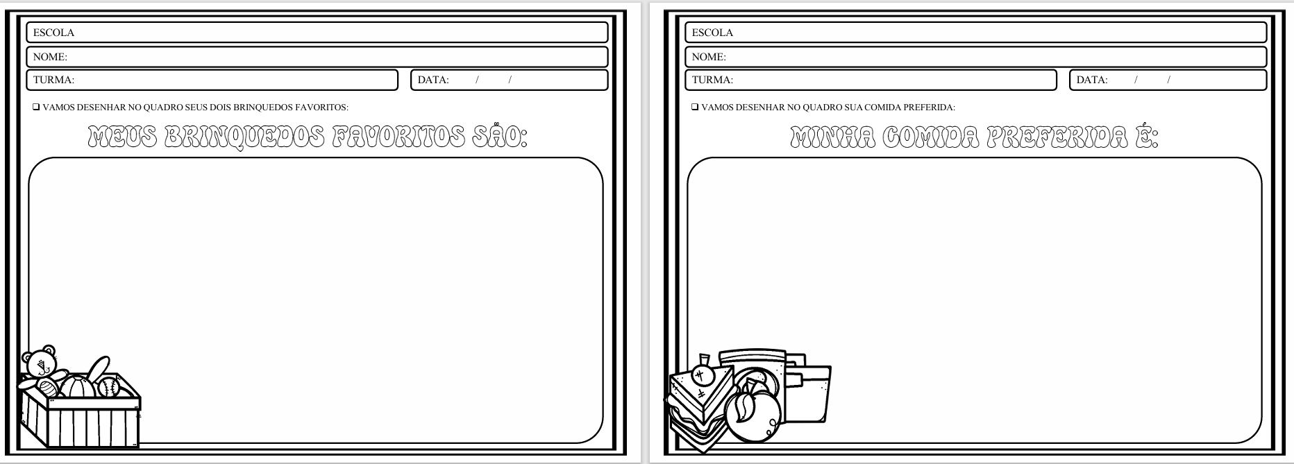 ✅ Espaços para desenhos, pinturas, colagens e atividades (bem no jeitinho que a criança ama!)