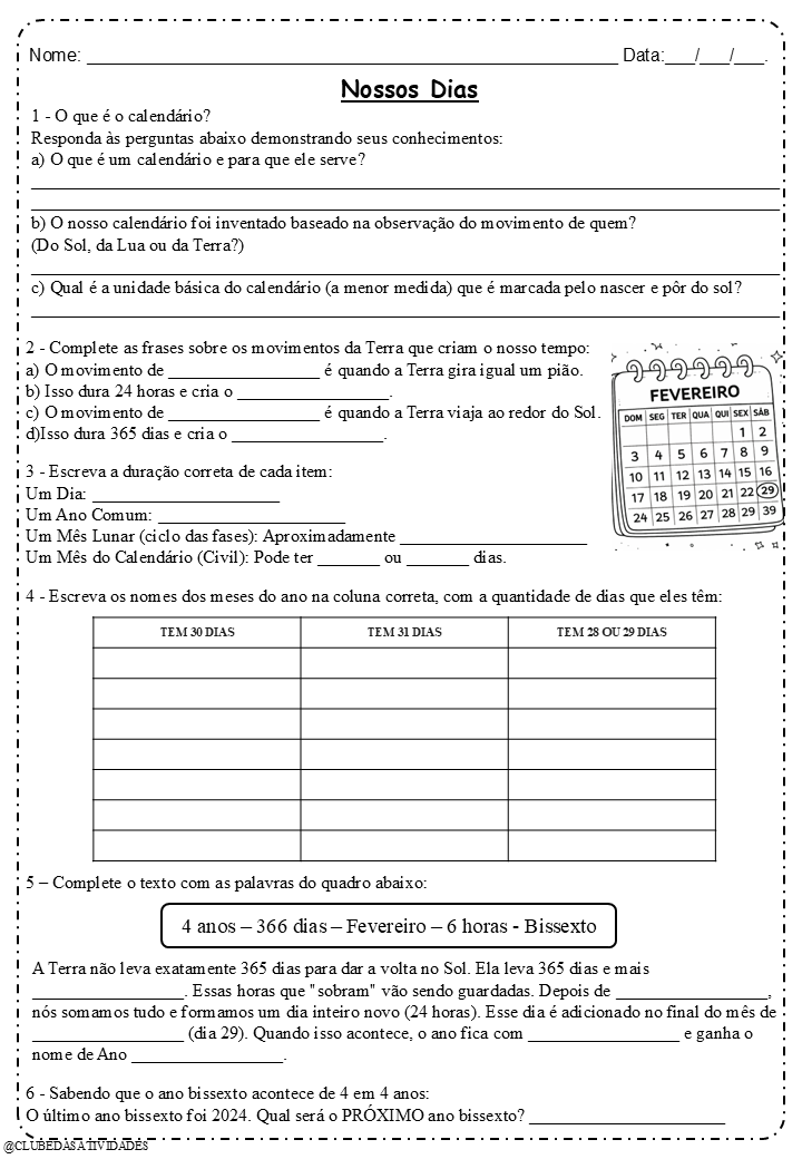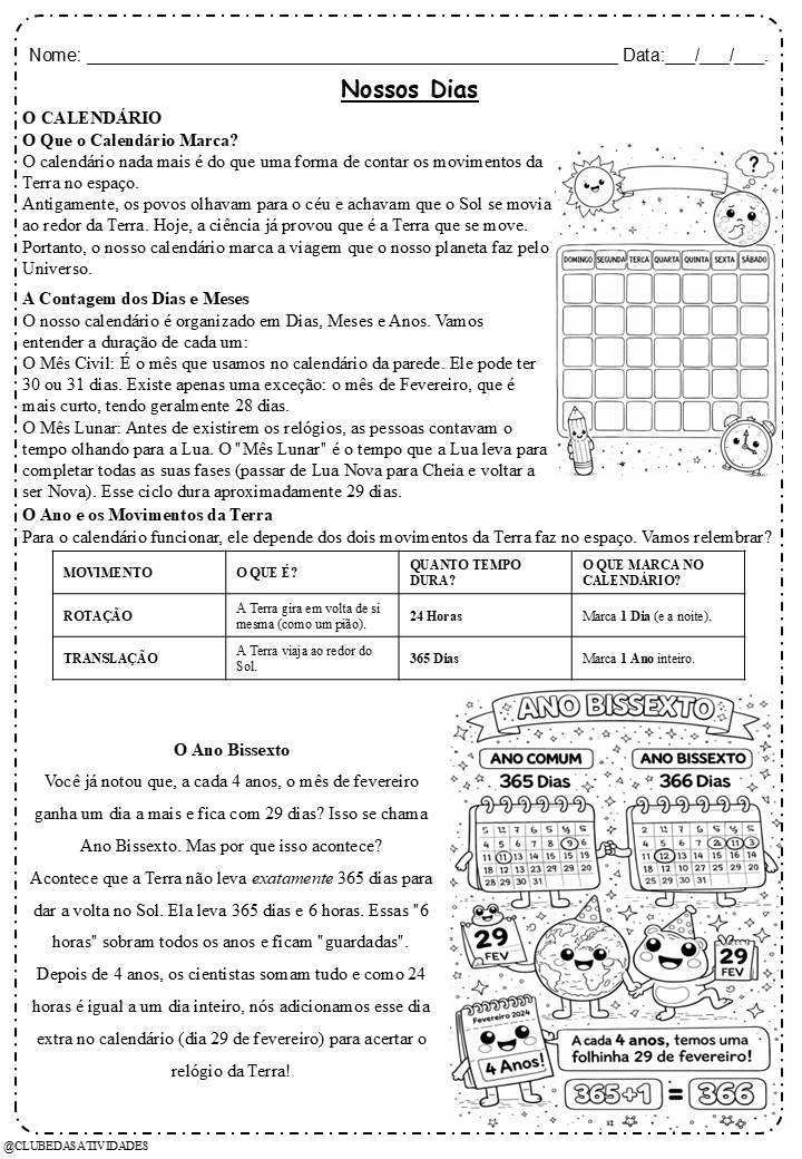 Com este material, o aluno compreende o calendário, os movimentos da Terra, o ano bissexto e as estações do ano de forma clara, visual e significativa ✨