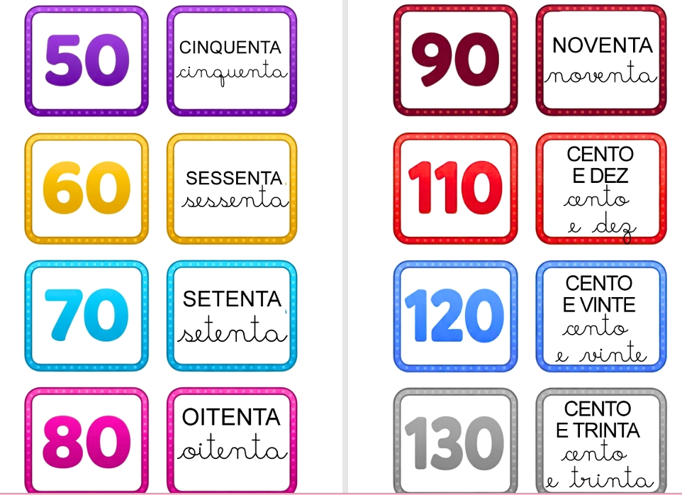 Aprenda os números de forma divertida. Números de 1 a 210 Flashcards