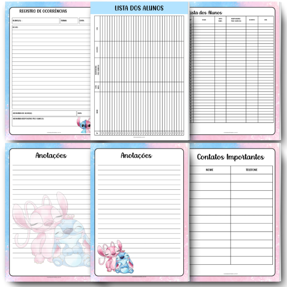–> O Planner do Stitch é confeccionado com folhas para que encadernem sem perder nada do que está escrito, ou coloque em fichário. A disposição das folhas é apenas sugestão. Você escolhe como quer usar.
