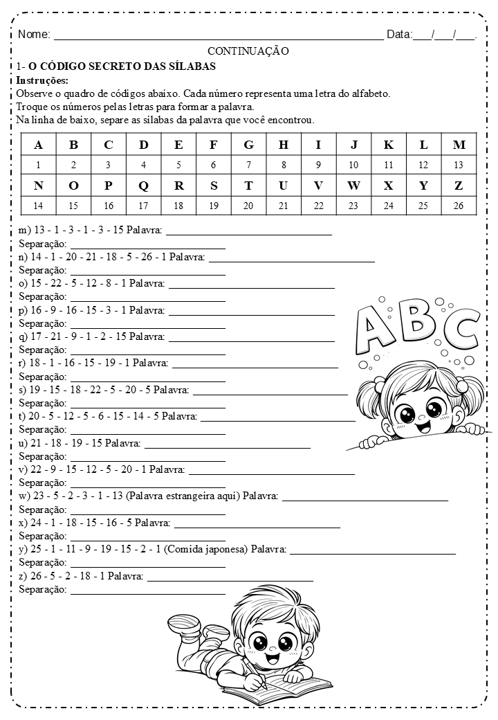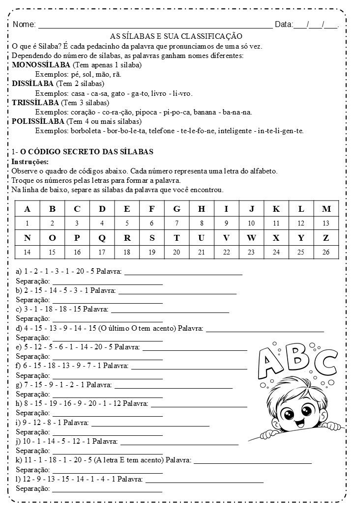 🔐 Código secreto das sílabas (decodificar palavras e separar em sílabas)