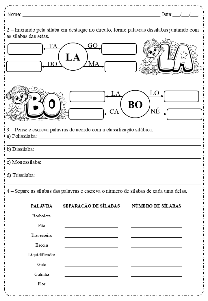 🧩 Formação de palavras (com sílabas em destaque, como LA e BO)