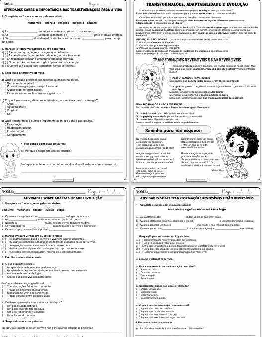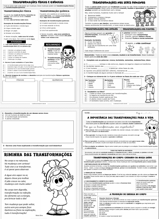 Caderninho de Transformações Físicas e Químicas para 4º ano.